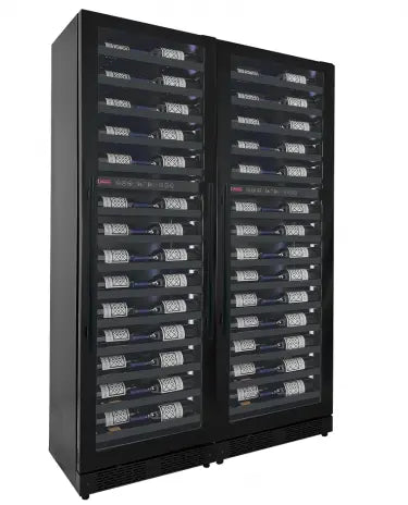 - Low-E UV-protective tinted glass doors shield wine from harmful light