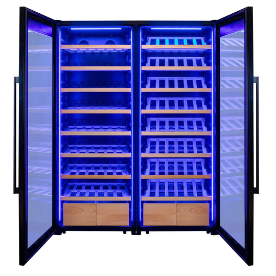 Designed for collectors who want both storage and presentation, this freestanding side-by-side wine refrigerator offers large-capacity wine preservation with elegant display shelving. Precision digital controls, UV-protective black glass doors, and smooth-glide wooden racks ensure optimal conditions...Regular price $5,436.00Regular price $5,436.00