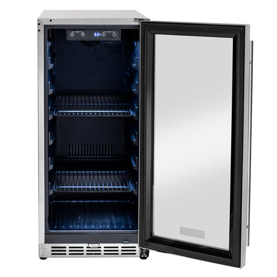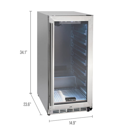 Kegco 15" Outdoor Glass Door Beverage Center – Commercial Built-In Cooler